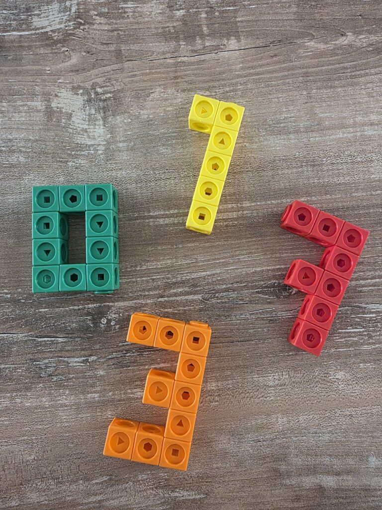 Dopo aver lasciato i bambini liberi di creare forme e disegni, possiamo chiedere loro di rappresentare i numeri da 0 a 10 proprio utilizzando i cubetti.