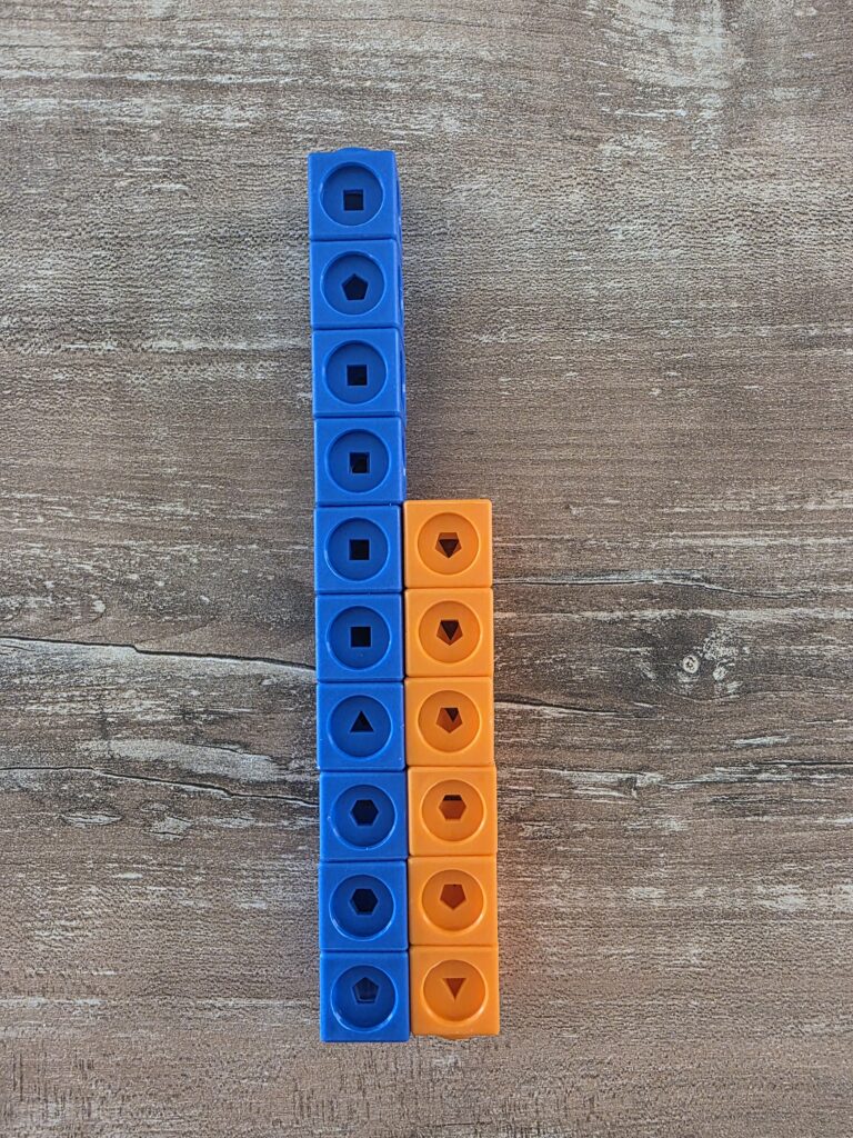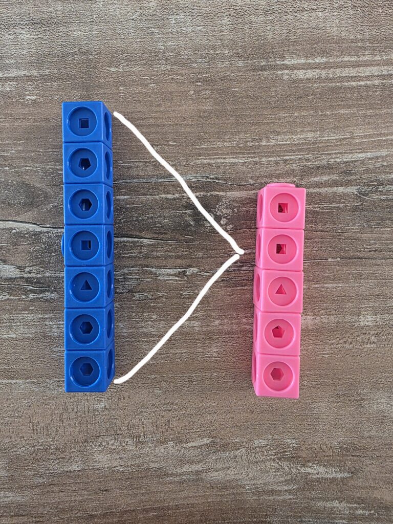 Grazie ai cubetti è possibile visualizzare il concetto di maggiore, minore e uguale mettendo a confronto le torri create con il numero di cubetti richiesto.