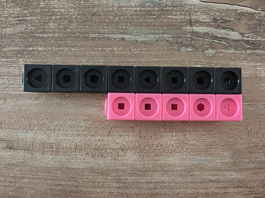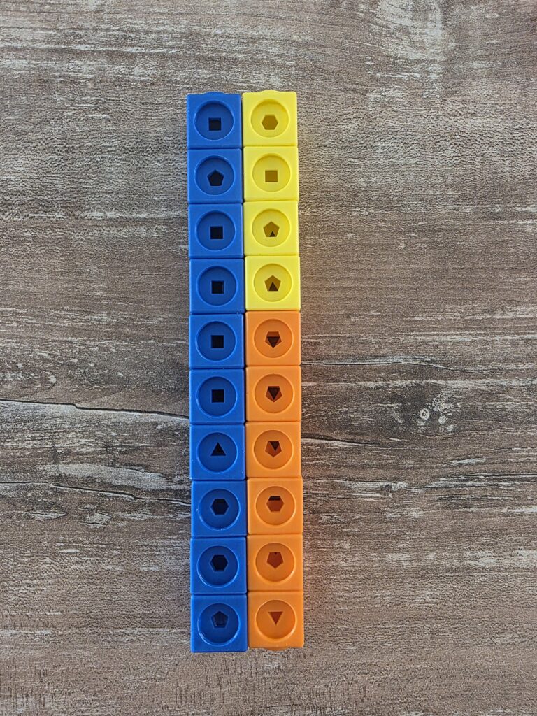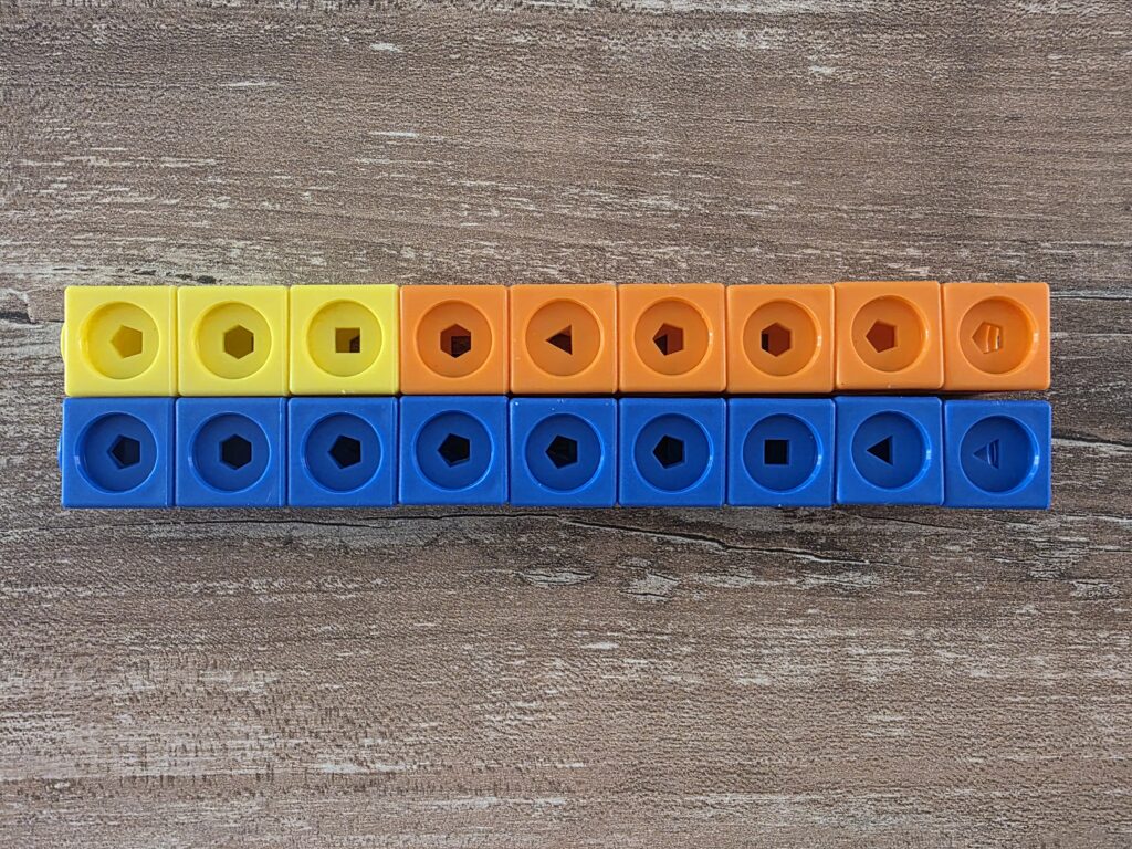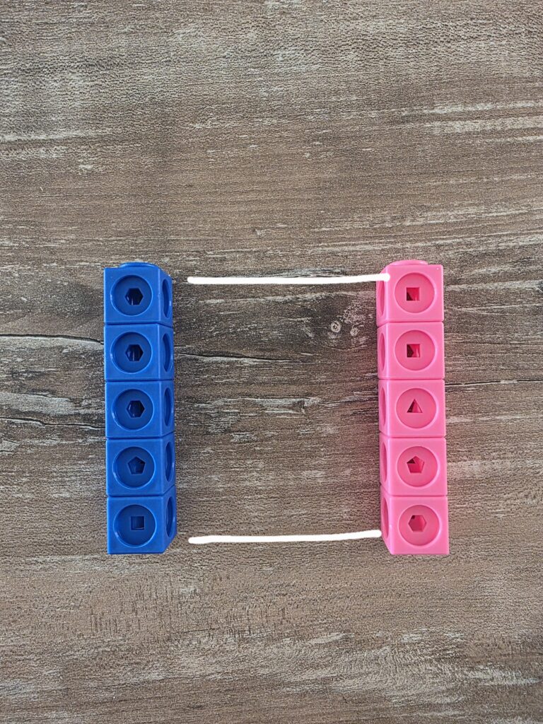 I mathlink cubes sono uno strumento molto utile per manipolare gli amici del 10: lasciando una torretta da 10 a disposizione, chiediamo ai bambini di trovare quali sono le coppie di numeri che formano 10.