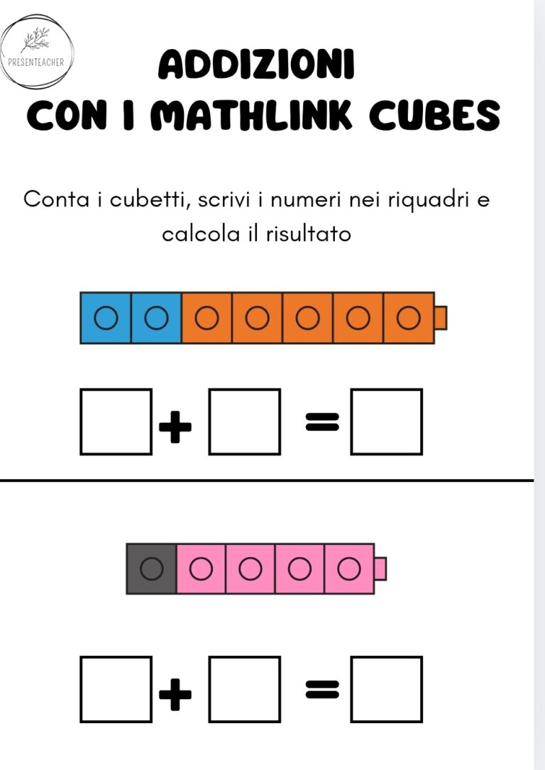 OFFERTA: con l’acquisto di una confezione di Mathlink Cubes + una confezione di Fidget Cubes puoi avere IN OMAGGIO le schede scaricabili per realizzare tutte le attività descritte in questo articolo.