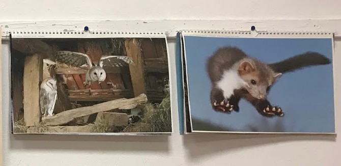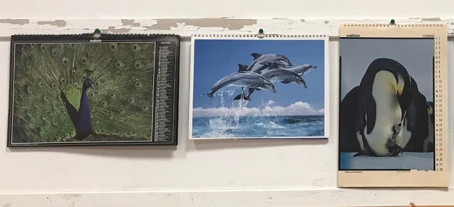 In Aula Universo abbiamo una piccola parete dove sono appesi alcuni vecchissimi calendari scientifici, che sono stati recuperati e tenuti per le bellissime immagini di animali che contenevano. su ogni mese c’è una foto reale di un animale nel suo habitat e accanto c’è una brevissima didascalia che dice di che animale si tratta.
