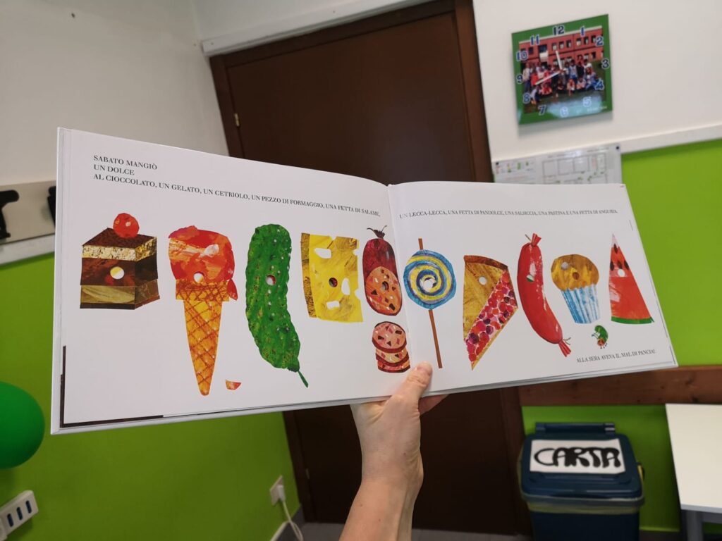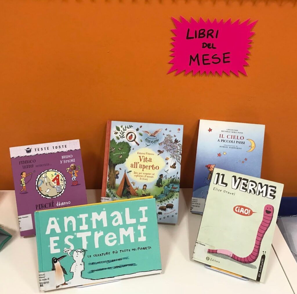 Potreste pensare che la lettura di un libro sia un’attività più legata all’italiano che alla matematica e alle scienze. Non è vero: va benissimo anche in queste discipline! Non solo: spesso i libri che scegliamo di leggere (anche solo parzialmente, per poi rimanere a disposizione dei bambini durante i momenti liberi) sono libri scientifici, adatti ai bambini e che magari riguardano un argomento che stiamo affrontando. Ad esempio quando abbiamo fatto nascere i pulcini nell’incubatrice il nostro libro era il Gallinario che leggevamo pagina dopo pagina nell’attesa di vedere schiudersi le uova.