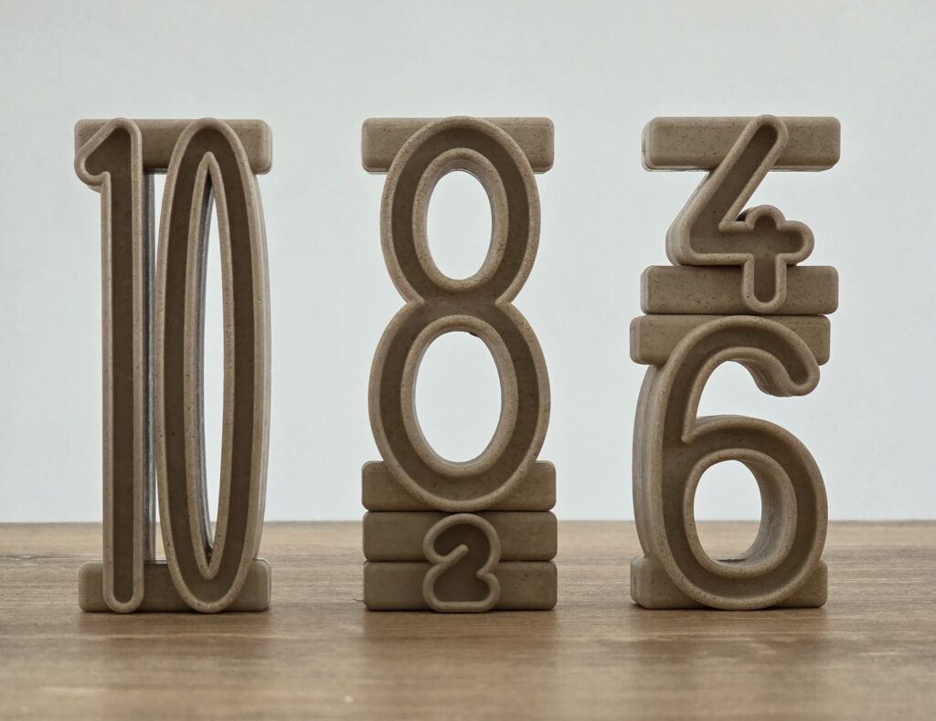 Quando i bambini hanno ben consolidato gli amici del 10 possiamo chiedere loro di formare 10 usando più di due numeri (va benissimo continuare a mantenere le cifre a 1 a 9): in questo caso sarebbe opportuno avere più di una confezione a disposizione così si possono anche ripetere gli stessi numeri.