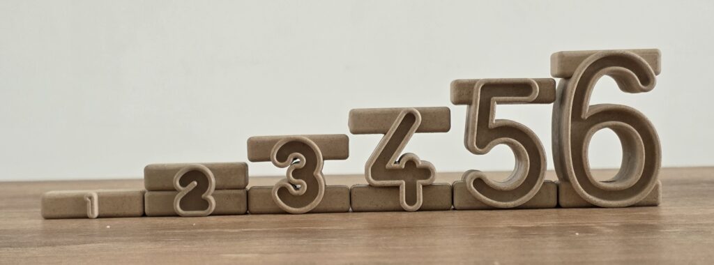 Dopo che dai bambini è emerso che la dimensione dei numeri varia in base al valore delle cifre stesse (più i numeri crescono, più la dimensione del materiale aumenta), chiediamo loro di disporli in ordine prima crescente poi decrescente.