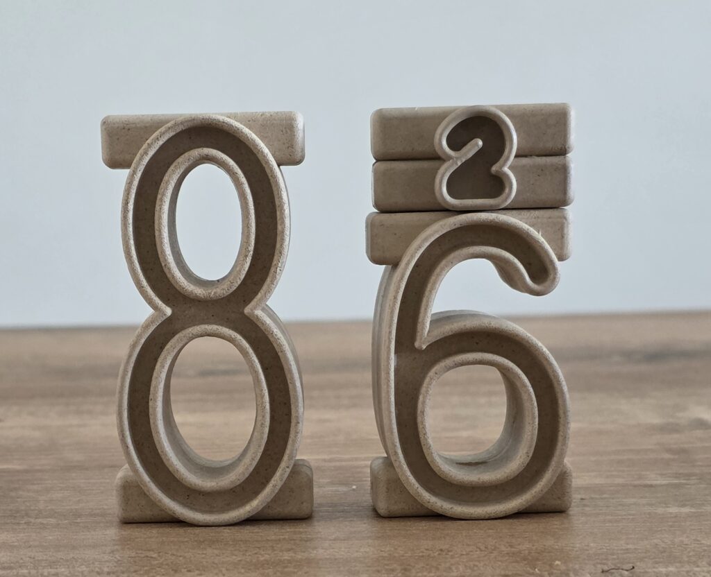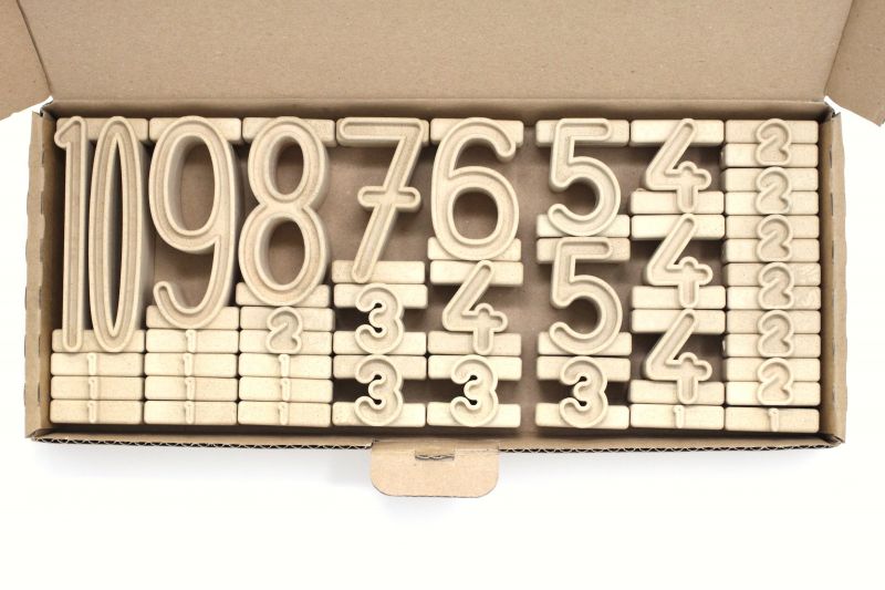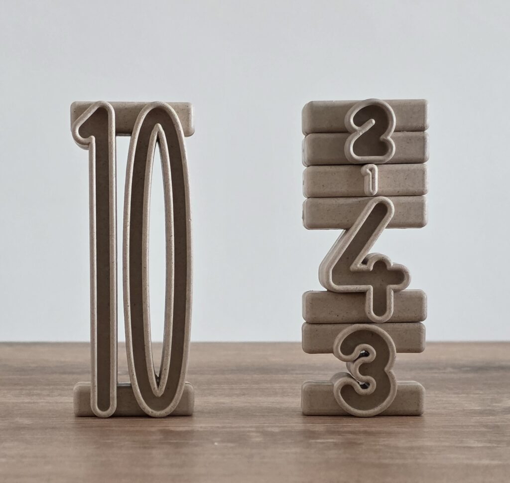 Il set è composto da 11 pezzi ciascuno corrispondente ad un numero da 1 a 10 (il 5 compare due volte). Lo potete acquistare qui.