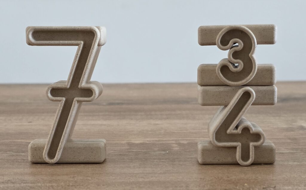 Infine possiamo usare il materiale per fare semplici addizioni e sottrazioni entro il 10: impiliamo due numeri e chiediamo ai bambini di dire la somma dei due.