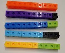 La stessa attività può essere fatta con dei mattoncini dove prima si forma una torre da 10 e accanto un’altra torre composta da due torri più piccole di diversi colori. Ad esempio, si possono utilizzare i mattoncini, oppure i Mathlink (molto utili per numerose altre attività) o i cubetti ad incastro in legno