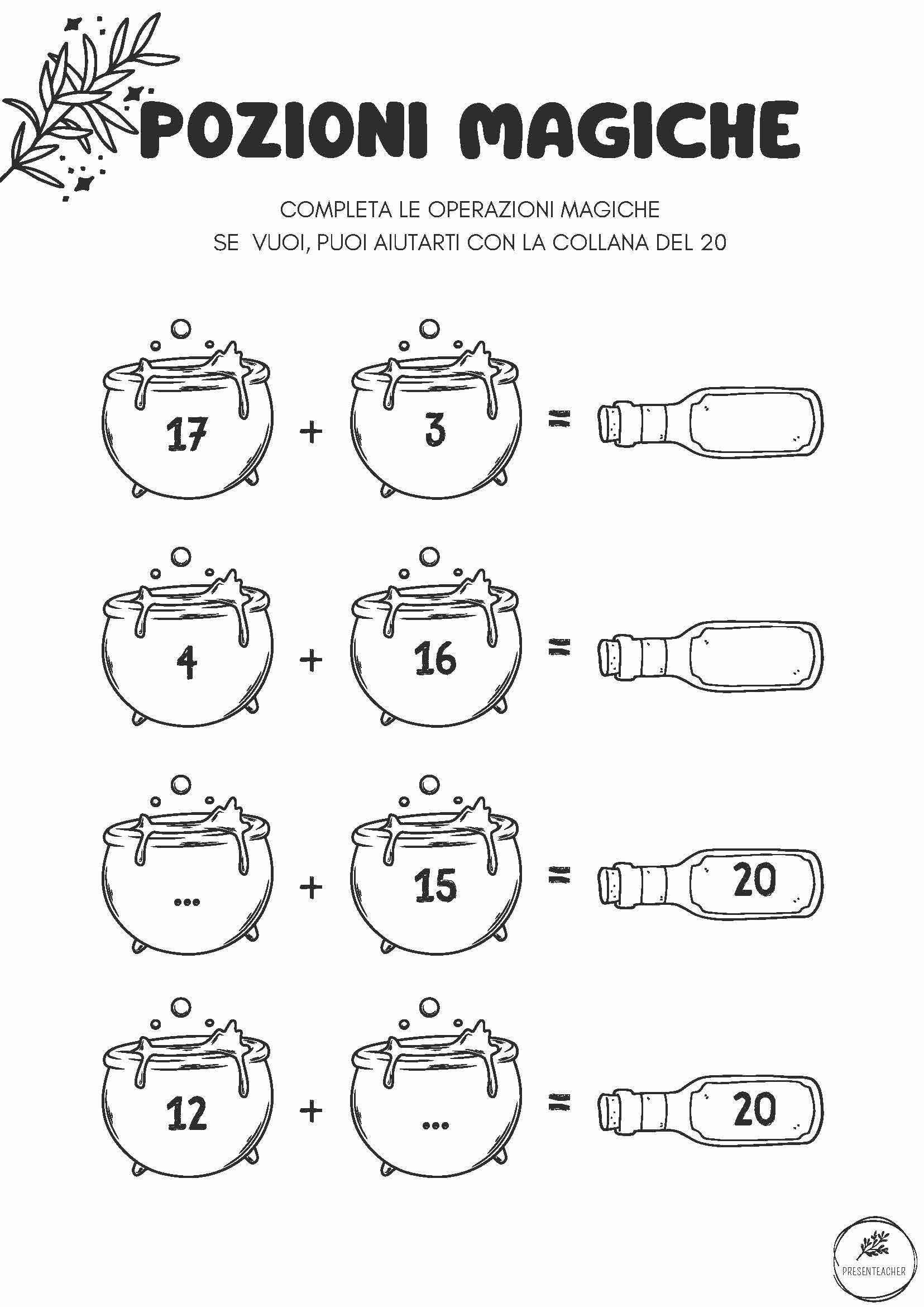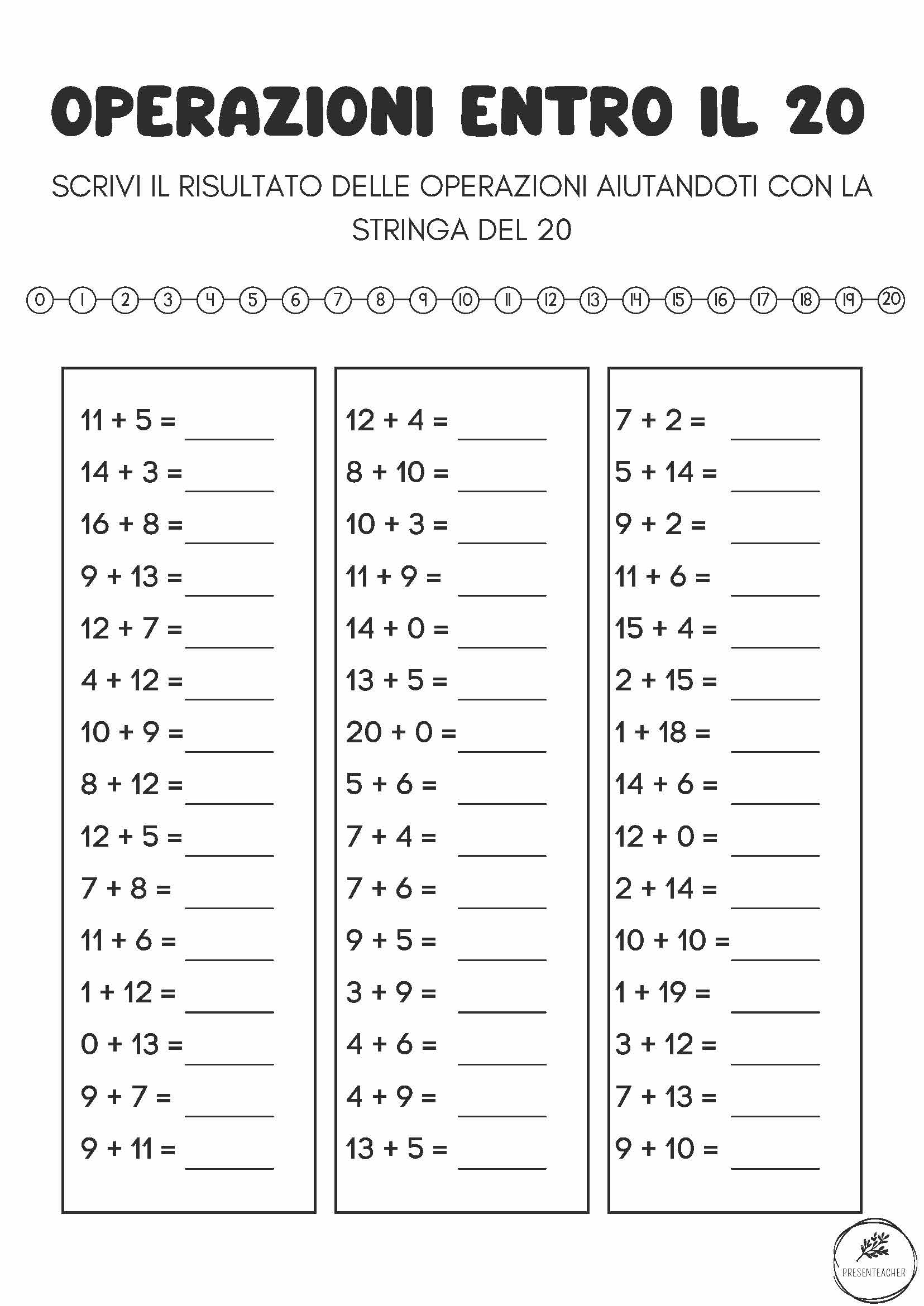 Tre schede fronte-retro di attività da utilizzare in abbinamento alla collana del 20.