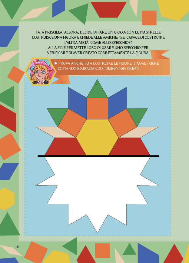 Per realizzare le attività  presente nel libro, saranno indispensabili i Pattern Blocks, diverse forme geometriche in legno (nel sito ci sono diverse offerte oppure è possibile acquistare i pattern blocks separatamente) che potranno essere sovrapposte alle figure disegnate nel libro per realizzare ogni sfida in modo molto pratico e giocoso.