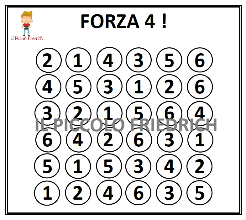 Il gioco di forza 4 con i numeri per la classe prima. Una scheda con 2 tabelloni per giocare.
