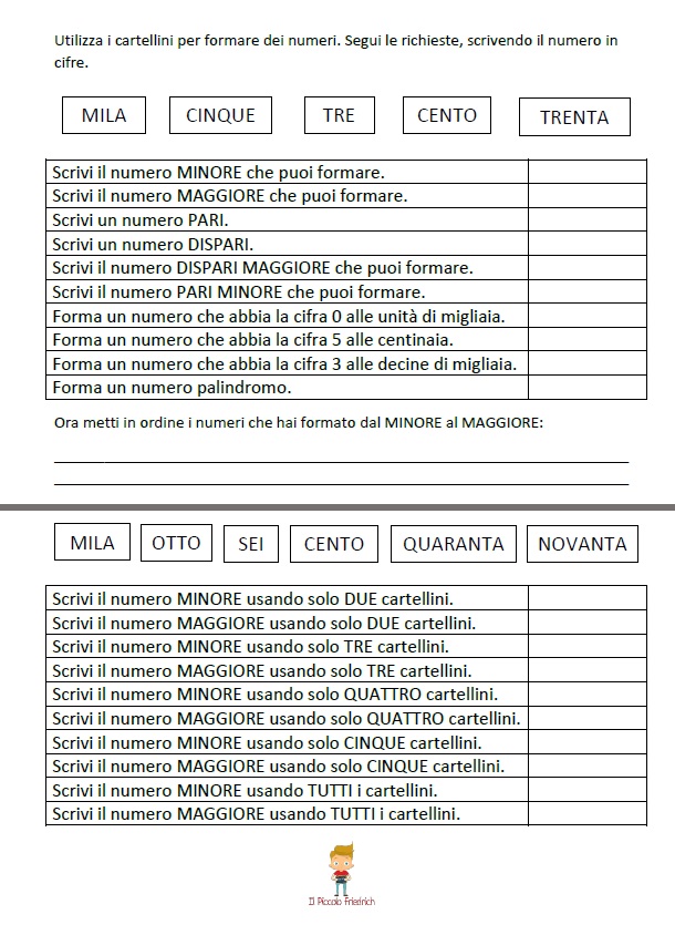 Una scheda per giocare al gioco dei cartellini in classe quarta o quinta.