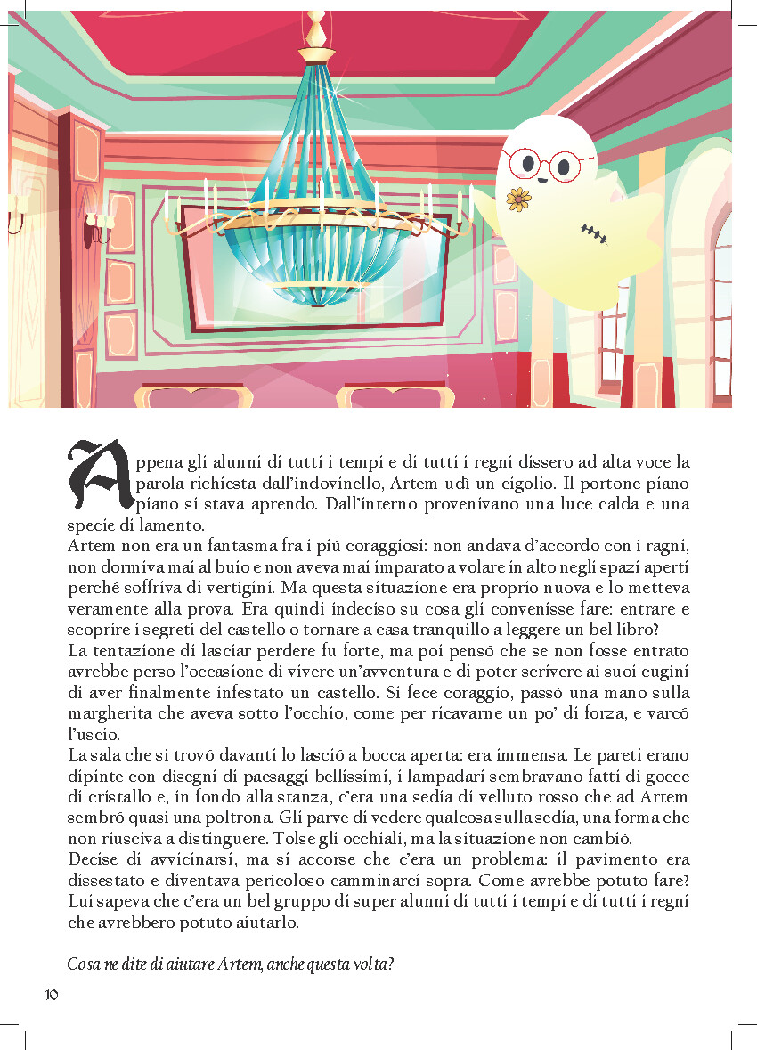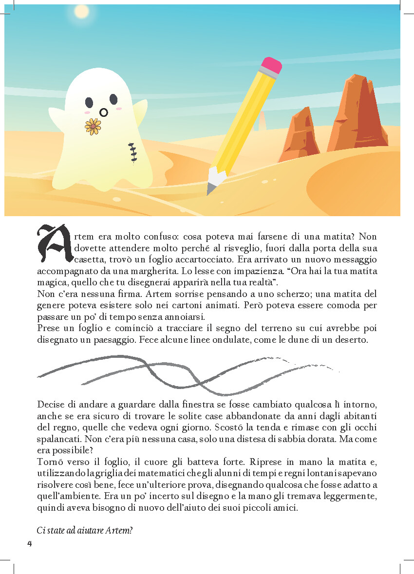 Una Storia Fantastica, con protagonista un piccolo amico fantasma che accompagnerà  i bambini in divertenti avventure matematiche che potenzionato il calcolo mentale e stimolano la logica e il ragionamento. Artem è un fantasmino curioso e in cerca di emozionanti avventure, ma avrà  bisogno dell’aiuto dei bambini di tutti i regni e di tutti i tempi per superare alcune appassionanti prove e svelare tanti piccoli misteri.