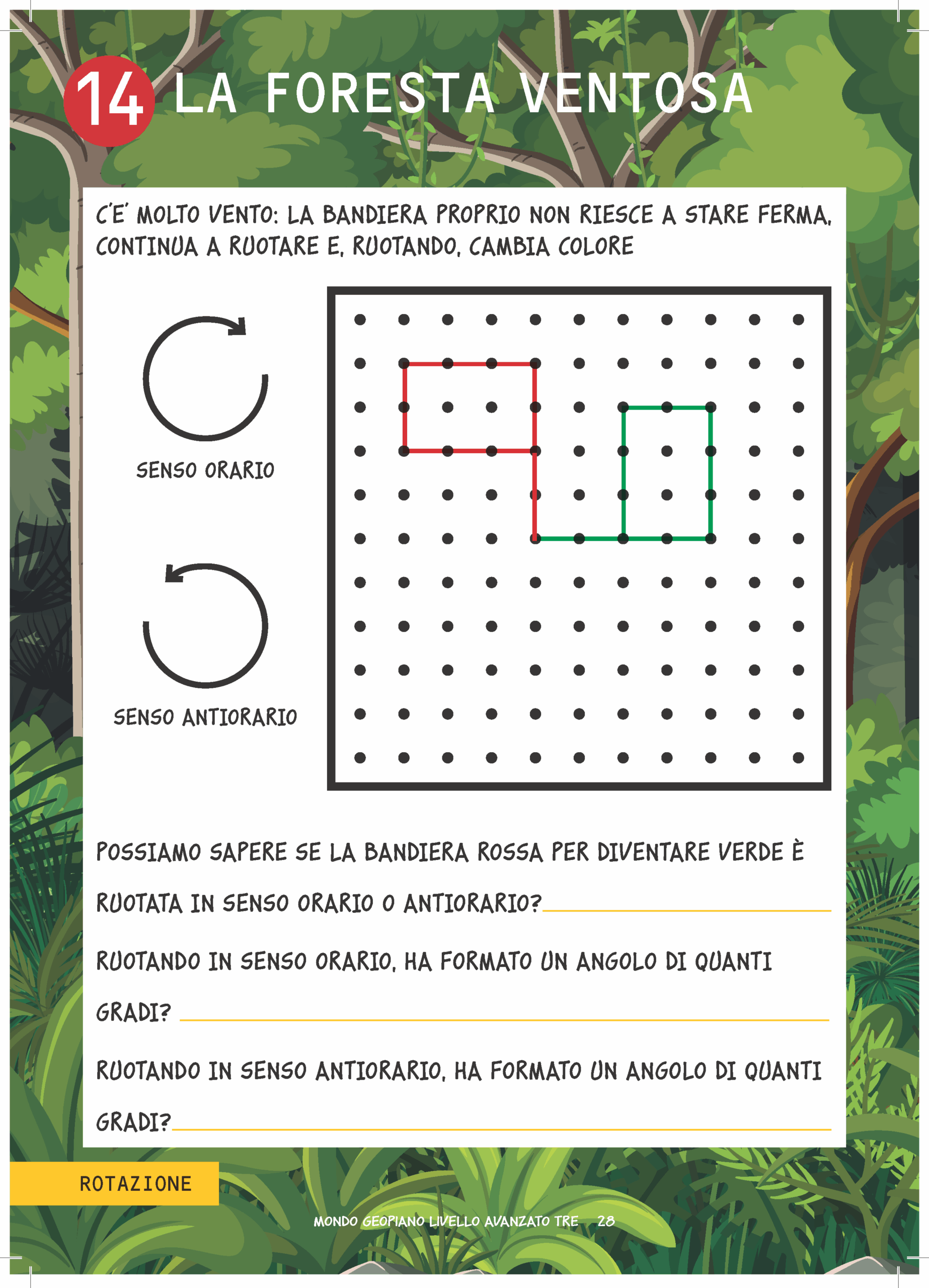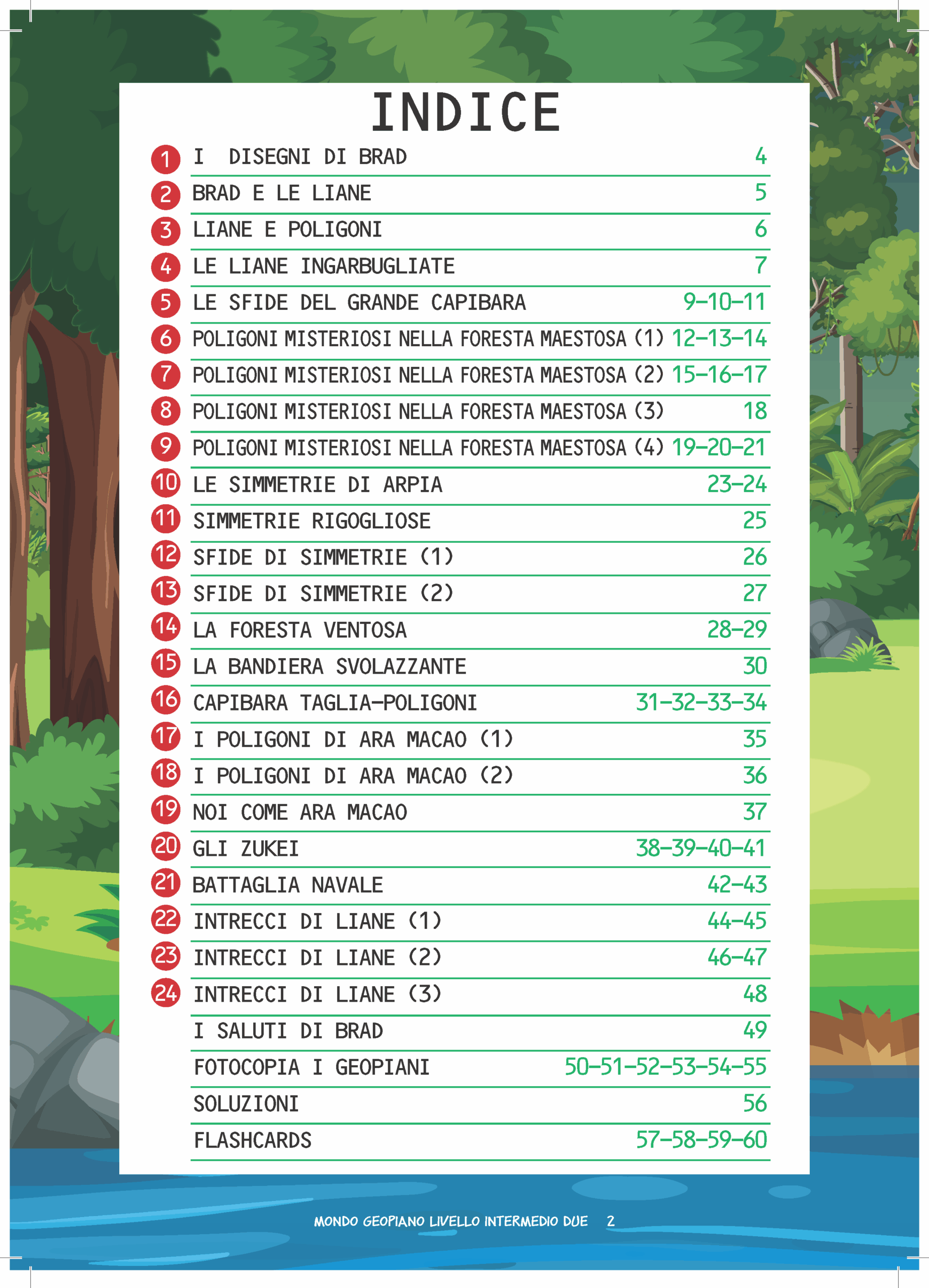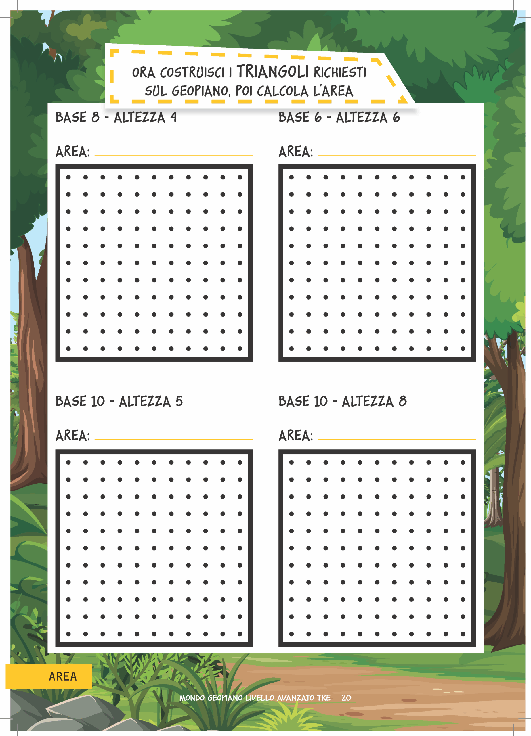 Un misterioso viaggio nella giungla in compagnia di Brad, un simpatico e dolce bradipo, e dei suoi amici che accompagneranno i bambini alla scoperta di concetti come perimetro, area, trasformazioni geometriche e tanto altro ancora, attraverso giochi con gli elastici sul Geopiano. Comprende tante attività graduali su vari argomenti matematici e delle flashcards da ritagliare per creare dei disegni geometrici sul Geopiano.