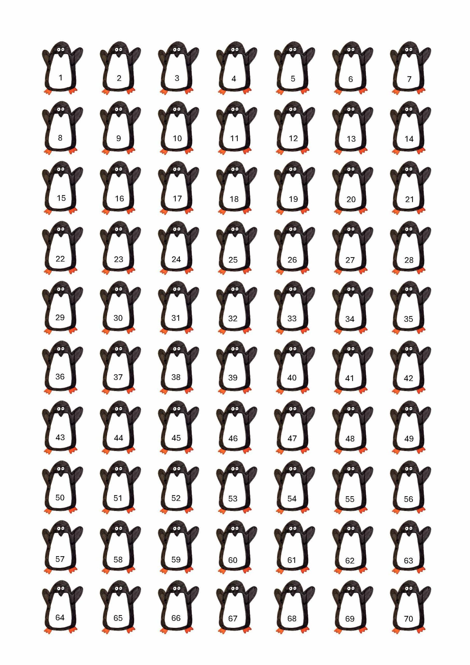 Scheda con 365 pinguini numerati.