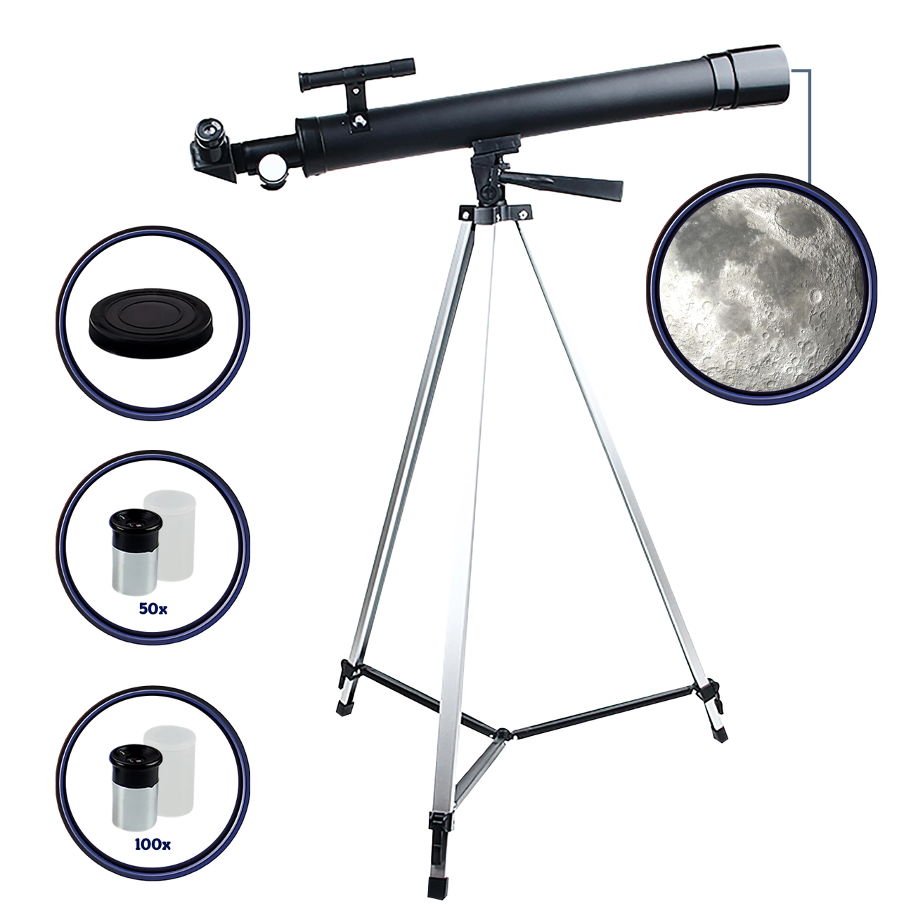 Con il telescopio lunare Science4you, preparati a montare e utilizzare il telescopio lunare per bambini per osservare la Luna e tutti i suoi dettagli! Telescopio per bambini e principianti – Usa i diversi oculari da 6 mm e 12 mm con ingrandimento 50x e 100x e diametro della lente di 50 mm inclusi nel tuo telescopio astronomico per principianti e bambini per osservare oggetti con maggiore qualità, precisione e stabilità. Telescopio facile da montare – Telescopio facile da montare e smontare per principianti e bambini, perfetto da portare ovunque e osservare la luna! Giocattolo educativo STEM — Science4You mira a sviluppare giocattoli educativi che combinano divertimento ed educazione incoraggiando la curiosità e la sperimentazione. Manuale di istruzioni in 7 lingue: inglese, francese, portoghese, spagnolo, tedesco, olandese e italiano.