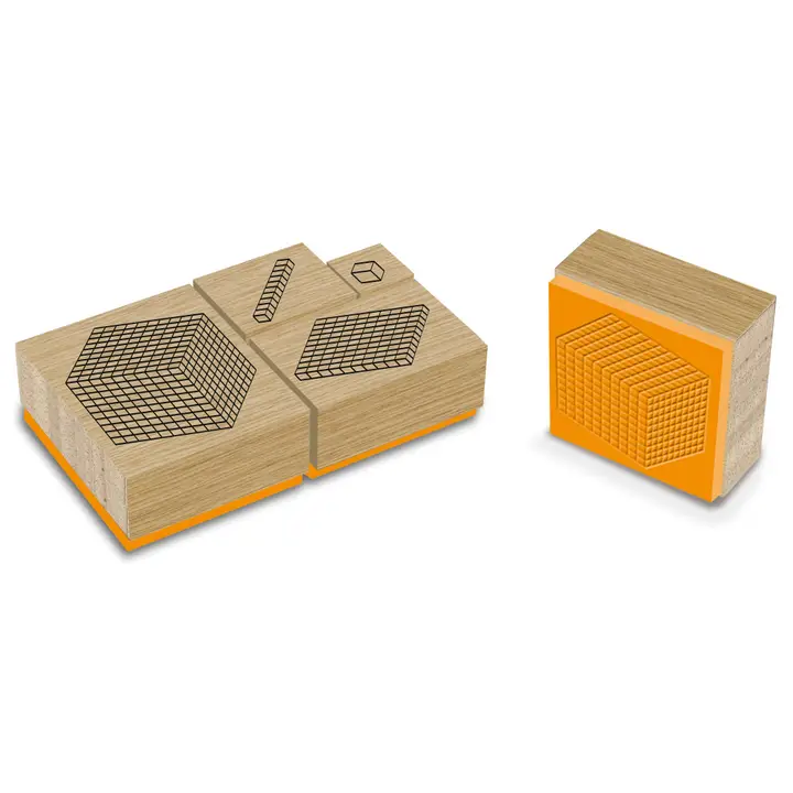 Buffer di decomposizione digitale Base 10. Supporto alle attività  educative degli insegnanti che consentiranno ai bambini di imparare a contare. Può essere utilizzato anche dai genitori per insegnare ai propri figli a contare in modo divertente. Timbri in legno serigrafati.